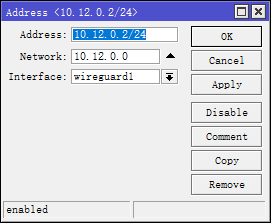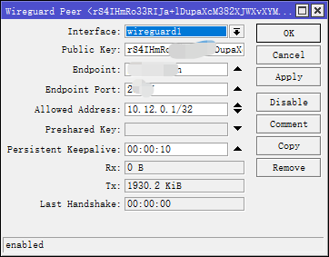 - Allowed Address填写位置一的Wireguard的虚拟IP