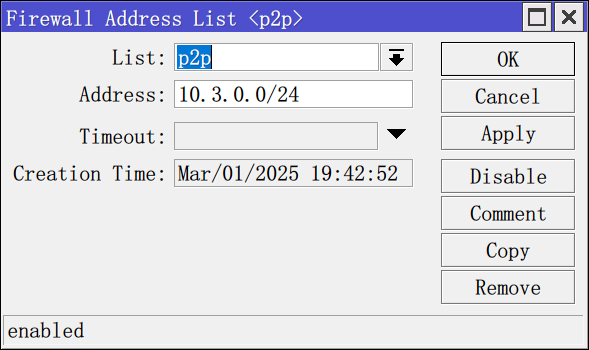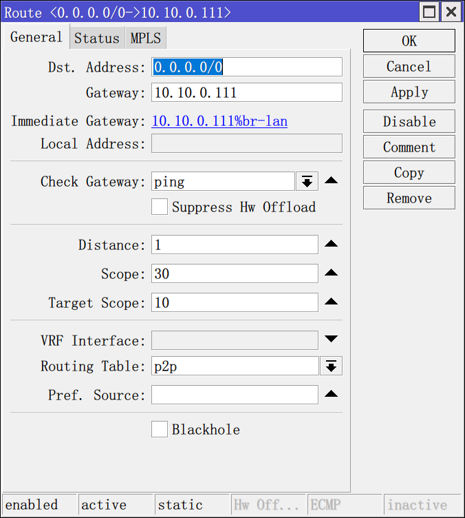 Routing->Tables增加一条名为p2p的路由表, 勾选FIB -